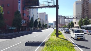 佐世保駅前北口から見て国道沿いの歩道を渡ります。