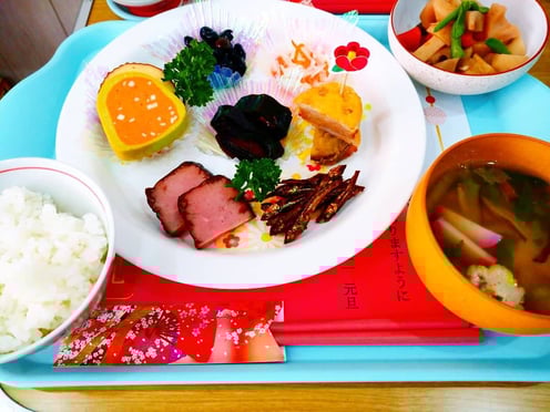何かお正月らしいことを…と思いながら、雑煮や伊達巻、煮豆等、正月料理の提供を行いました!!