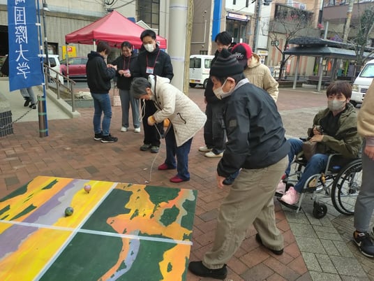 島瀬公園では長崎国際大学の生徒さん達が「佐世保こま」のイベントを開催されており、