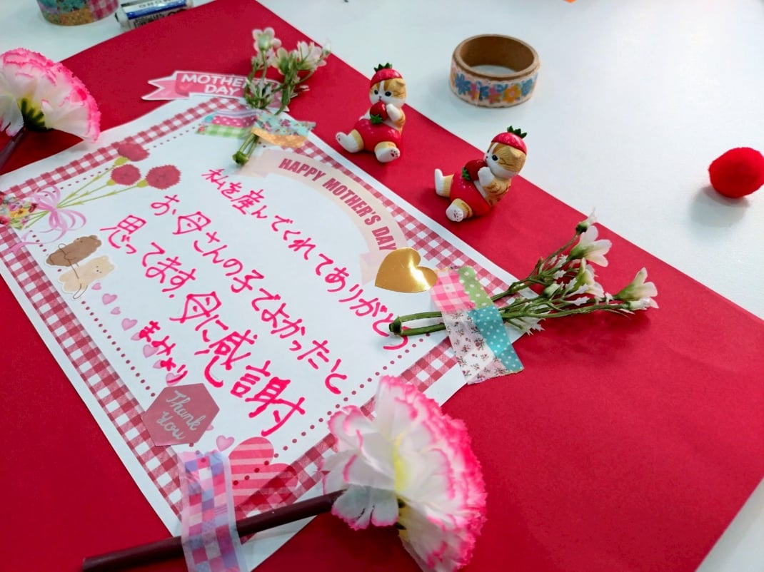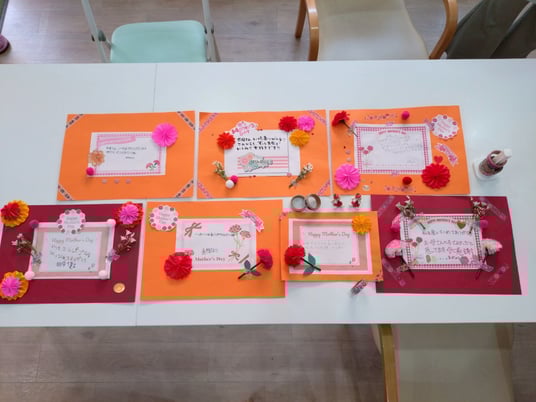 木曜日の利用者様は、若いメンバーさん(生活介護ご利用の方)が多くいらっしゃるので、お母様に向けて、日頃の感謝を込めて製作を行いました(^▽^)/