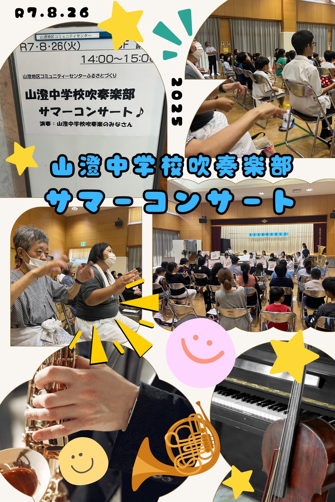 いつもお世話になっている山澄地区コミュニティセンターさん主催の「山澄中学校吹奏楽部サマーコンサート」に参加してきました!!